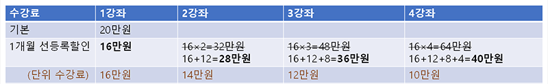두 분이 함께 한 강좌에 등록하시면 한 강좌 더 듣게 해 드립니다.”