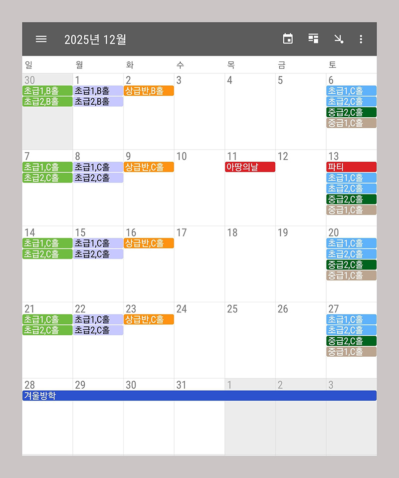 A. 네, 맞습니다. 주1회 1시간씩, 월4회가 기본입니다. 일요반, 월요반, 토요반, 이렇게 세 개의 강좌가 개설되어 있습니다.