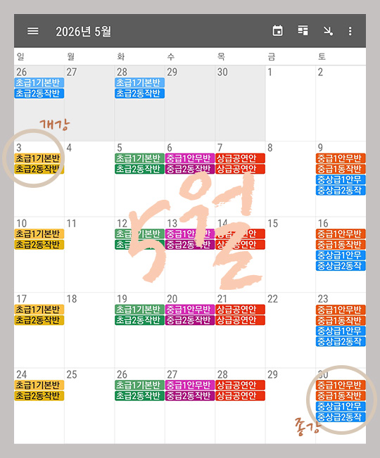 🍀 5월 단체반 수강 달력